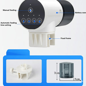Package Includes: 1 Automatic Fish Feeder, 2 Mounting Options (Clamp Base & Sticker).